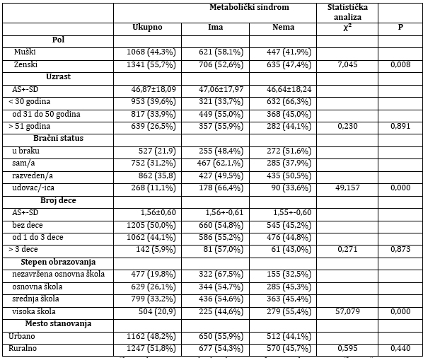 metaboličkog sindroma u ispitivanoj grupi. Za sve primenjene