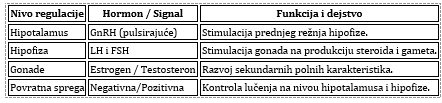 Tabela 1. Komponente i regulacija HPG ose. Izvor: