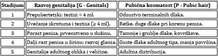 Tannerovih stadijuma (I–V) [1,13]. Detaljni kriterijumi za procenu