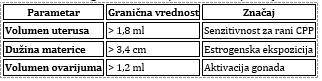 devojčica i uvećanje testisa (više od 4 ml) kod dečaka pre 8/9
