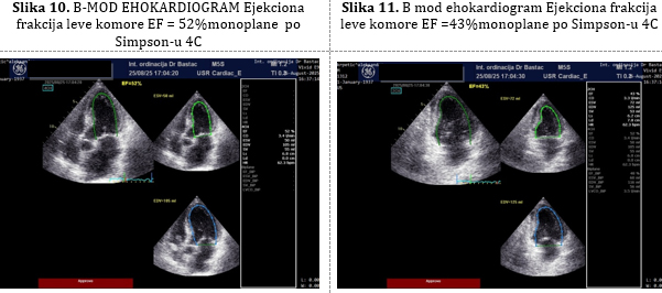 frakcija (EF) leve komore je 39% u M modu (Teicholtz) (Slika 2), a