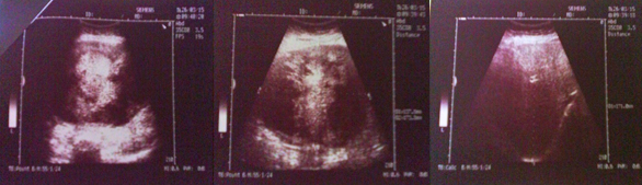 predominantly hypoechoic mass in the abdomen was confirmed.