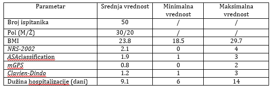 Uzorak je obuhvatio pacijente sa preoperativnom nutritivnom