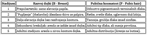 razvoja dojki i pubične kosmatosti kod devojčica sistematizovani su