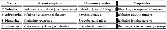 devojčica i uvećanje testisa (više od 4 ml) kod dečaka pre 8/9