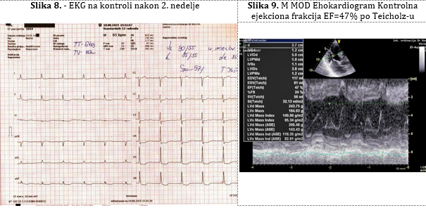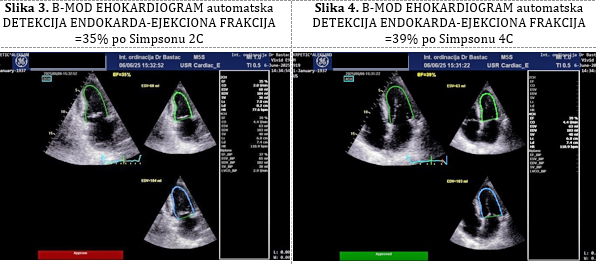 frakcija (EF) leve komore je 39% u M modu (Teicholtz) (Slika 2), a